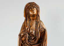 Die Figur, die ich ziemlich genau elf Jahre später rein zufällig im Kölner Kunsthandel entdeckte, entstammt demselben stilistischen Kontext. Deshalb sprang sie mir sofort ins Auge. Allerdings war sie keine Maria Magdalena, sondern eine Trauernde Maria. Spannenderweise stimmte sie in ihren Maßen weitgehend mit unserem Trauernden Johannes überein. Es konnte kein Zweifel bestehen: Beide Statuen gehörten ursprünglich zusammen – trotz ihrer extrem unterschiedlichen Erhaltungszustände. Der Johannes besitzt noch die vollständige Grundierung und große Partien originaler bzw. alter Fassung, während die Maria durch vollständiges Abbeizen, Patinierung, Verschmutzung und Beschädigung stark gelitten hat und sich optisch vollkommen anders präsentiert. Der Preis trug dem schlechten Erhaltungszustand in angemessener Weise Rechnung. So waren Herr Demandt und ich uns einig: Die Marienfigur sollte schnellstmöglich für die Liebieghaus Skulpturensammlung angekauft werden! Und so geschah es denn auch bereits im Dezember 2017, und zwar mit Mitteln aus dem Nachlass Werner Wirthle.