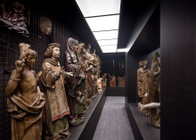 Die Skulptur „Anbetender König mit einem Geldkasten“ ist im Schaudepot der Liebieghaus Skulpturensammlung zu sehen, das im Rahmen von Hinter den Kulissen für Besucherinnen und Besucher zugänglich ist.