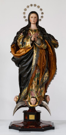 Besonders auffällig ist die CT-Aufnahme der Mondsichel, die ein Gesicht zeigt, das durch die Wolke verdeckt wird – ein Merkmal, das typisch für Skulpturen des Inmaculada-Typs von De Mena ist.