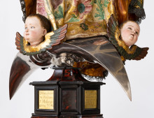 Originale Sockelung und Mondsichel mit Gesicht an einer Virgen Inmaculada, Pedro de Mena, 1680, Inventarnummer CE2968/001, aus dem Nationalmuseum für Skulptur in Valladolid während ihrer Restaurierung im Institut für Denkmalpflege in Madrid, © Instituto del Patrimonio Cultural de España (IPCE), Ministerio de Cultura y Deporte, Foto: David Valera Palomar