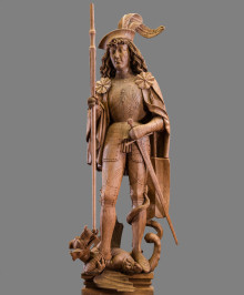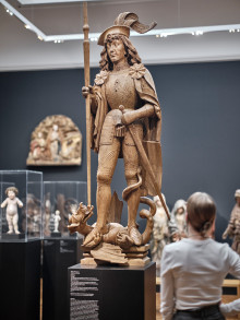 Nachdem die lebensgroße Skulptur des Heiligen Georg lange Zeit als Leihgabe im Klostermuseum der ehemaligen Benediktinerabtei Ochsenhausen südlich von Ulm zu sehen war, kehrte sie erst vor wenigen Jahren zurück in die Liebieghaus Skulpturensammlung.