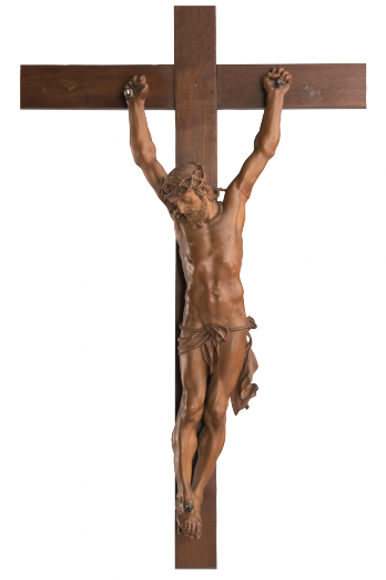 Der Kopftypus und die Gestaltung der Haare, die Längung des Rumpfes und die gerade gestreckten Beine weisen zurück auf Kruzifixe des in Nürnberg und Krakau tätigen Veit Stoß (um 1450–1533). Sie wurden zwischen 1600 und 1650 häufig als Vorbild für den Gekreuzigten gewählt. Das Kruzifix verbindet die Rezeption gotischer Motive mit frühbarocken Formen, wie der weicheren Behandlung der Haut, den gedrungenen Proportionen und der kräftigen Muskulatur. Es wird in die 1. Hälfte des 17. Jahrhunderts zu datieren sein und entstand in Süddeutschland, wahrscheinlich in Nürnberg.