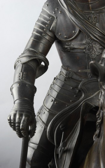 Die kleine Bronze zeigt Erzherzog Maximilian III., Bruder Kaiser Rudolfs II., Oberhaupt des Deutschen Ordens und Statthalter von Tirol, in zeitgenössischer Rüstung. Er reitet auf jenem Pferd, das ihn – einem Bericht von 1610 zufolge – „auß ainer grossen not getragen hat“. Gemeint ist damit wahrscheinlich die Rettung des Herzogs aus der Schlacht um Erlau (Eger) im Oktober 1596. Derselbe Bericht nennt als Bildhauer der Skulptur Hubert Gerhard. Ob Gerhard nur dieses eine Exemplar der Reiterdarstellung schuf, ist nicht bekannt. Sollte dies der Fall sein, könnte sich eine Erwähnung im Nachlassinventar Maximilians III. darauf beziehen: Eine Reiterstatuette des Erzherzogs stand als Bekrönung auf einem Kabinettschrank und diente als „Saalmonument“.