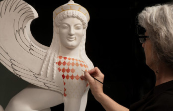 See how the sphinx of a Greek funerary monument was reconstructed in its original form and color.