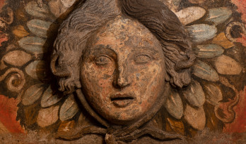 Specialists at the Liebieghaus were recently given the opportunity to examine the well-preserved coloration of a Greek, late classical burial site, the “Ipogeo dei Cristallini” in Naples. On the central wall of one of the burial chambers is a stone-carved three-dimensional representation of the head of Medusa—a Gorgon, surrounded by a painted aegis, the breastplate of Athena. Various scientific investigations precisely determined the traces of pigments left on the Gorgon figure. Relying on these findings as a basis, a color reconstruction of Medusa’s head was made in a workshop designed especially for this purpose. Only paint materials that are in keeping with the originals from antiquity were being used. The presentation was augmented by other objects from the museum’s holdings depicting myths about Athena and Medusa.