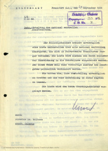 Brief des Kulturamts der Stadt Frankfurt a. M. an Alfred Wolters vom 24.9.1936, Städel-Archiv, Frankfurt a. M.