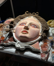 Aktuell – und noch bis zum 26. Oktober 2025 – ist die Farbrekonstruktion als Teil der Sonderausstellung „Isa Genzken meets Liebieghaus“ zu sehen. Dort hängt sie einer Arbeit der zeitgenössischen Künstlerin Isa Genzken gegenüber, die den Titel „Flugzeugfenster (Medusa)“ (2011) trägt: Die Innenverkleidung einer Flugzeugwand mit zwei Fensteröffnungen ist überklebt mit dem Foto der Mona Lisa auf der linken Seite und einem Porträt der Künstlerin selbst auf der rechten, beide Blicke nach oben gerichtet. Überblendet werden die Bilder mit dem Motiv des berühmten Medusa-Schildes des Barock-Künstlers Caravaggio.