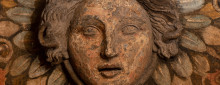 Diese Kalkmilchmalerei eignet sich nur für die erste grobe Anlage der Farbfassung. Die Modellierung der Haut sowie die feinen Details der Augen, Wimpern und Augenbrauen wurden anschließend unter Verwendung organischer Bindemittel – in unserem Fall vermutlich Ei – in einer Tempera- bzw. Secco-Technik ausgeführt.