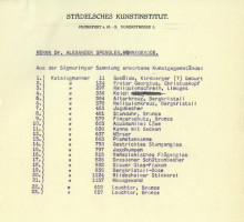 Liste der aus der Sammlung Sigmaringen von Alexander Spengler erworbenen Gegenstände, 1928, Städel-Archiv, Frankfurt a. M., Akte 753