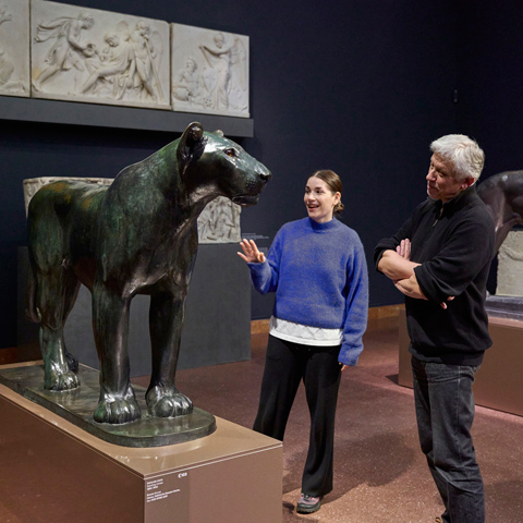 Im Dezember führt Sie Jakob Salzmann, wissenschaftlicher Mitarbeiter und Projektleiter der Ausstellung „Tiere sind auch nur Menschen. Skulpturen von August Gaul“, in die erstaunliche Welt der Tierdarstellungen von August Gaul und ihren Bezügen zur antiken Mythologie ein. Zudem erwarten Sie exklusive Einblicke in kuratorische Entscheidungen und zur Konzeption einer in den Kontext der Sammlung integrierten Sonderausstellung.