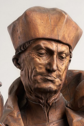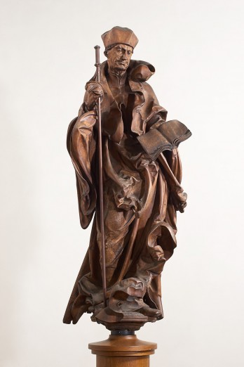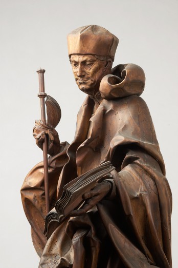 Eines der imposantesten Werke der Mittelaltersammlung des Liebieghauses ist ein heiliger Abt in Benediktinertracht. Die um 1520/30 entstandene Statue ist von immenser künstlerischer Qualität, vollplastisch, von heftiger Bewegung und erstaunlicher Expressivität in Gewandung und Gesicht. Mittelalterliche Kunstwerke sind oftmals schwer einzuordnen, weil die historischen Anknüpfungspunkte verloren sind. Häufig helfen hier Vergleiche mit anderen Werken weiter. In diesem Fall ist aber weder die künstlerische noch die regionale Herkunft, ja nicht einmal die Person des Dargestellten eindeutig zu klären. Sicher ist nur, dass es sich um einen heiligen Benediktinerabt handelt, eventuell um den Ordensgründer selbst, Benedikt von Nursia, eine der zentralen Gestalten klösterlich-kirchlichen Lebens im Mittelalter.