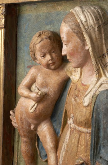 Devotional images for the home were very much in demand and accessible to a broad spectrum of buyers. As a result, reliefs of the Madonna by renowned sculptors were frequently produced in series using moulds and inexpensive materials such as clay, stucco and gypsum. This relief in the Liebieghaus, which is attributed to the Florentine artist Antonio Rossellino or his workshop, also exists in another version now in the Art Institute of Chicago. That one, however, is not a cast but was modelled individually by hand.